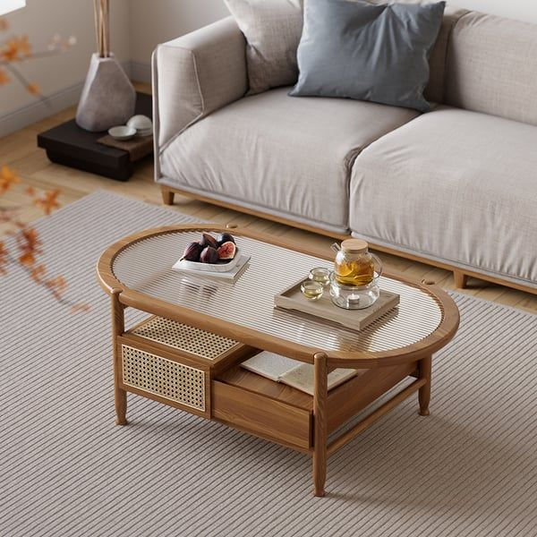 Introducing our Wood-Glass Coffee Table Rattan Leisure with 4 Drawers, the perfect addition to any living room or lounge area. This table seamlessly blends modern design with natural rattan materials, creating a unique and stylish piece for your home. The 4 drawers provide ample storage space for remotes, magazines, and other living room essentials, while the wood-glass combination adds a touch of sophistication to the piece. Crafted with quality and durability in mind, this coffee table is sure to become a focal point of your home decor. Elevate your living space with the timeless appeal of our Rattan Leisure Coffee Table.